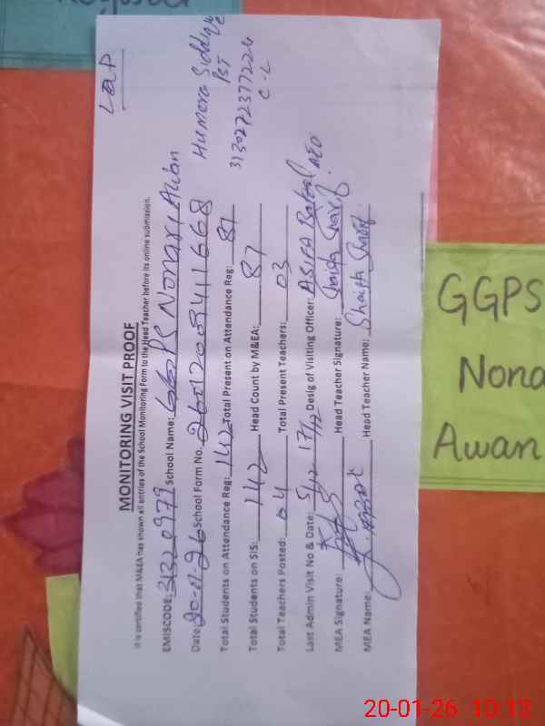 | EMIS Code: 31320979 | Name of School: GGPS NONARI AWAN | |||
