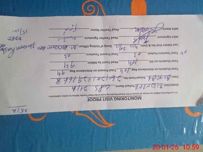 | Attendance Register | Head Teacher | MEA with School | Visit Proof |