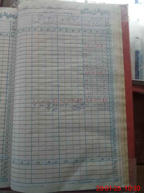 | CNIC | Full Name | Designation | R/C | Absence During Last Calender Month |