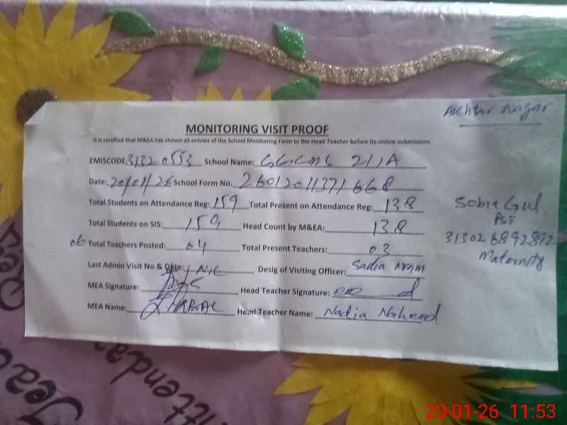 | EMIS Code: 31320553 | Name of School: GGCMS CHAK NO. 21/A | |||