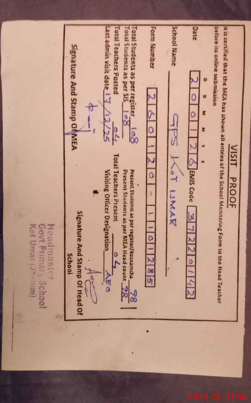 | EMIS Code: 37220142 | Name of School: GPS KOT UMER | |||