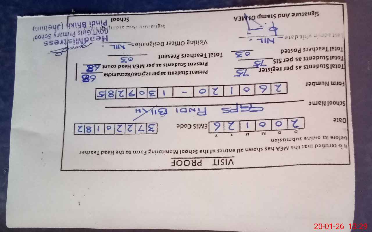 | Attendance Register | Head Teacher | MEA with School | Visit Proof |