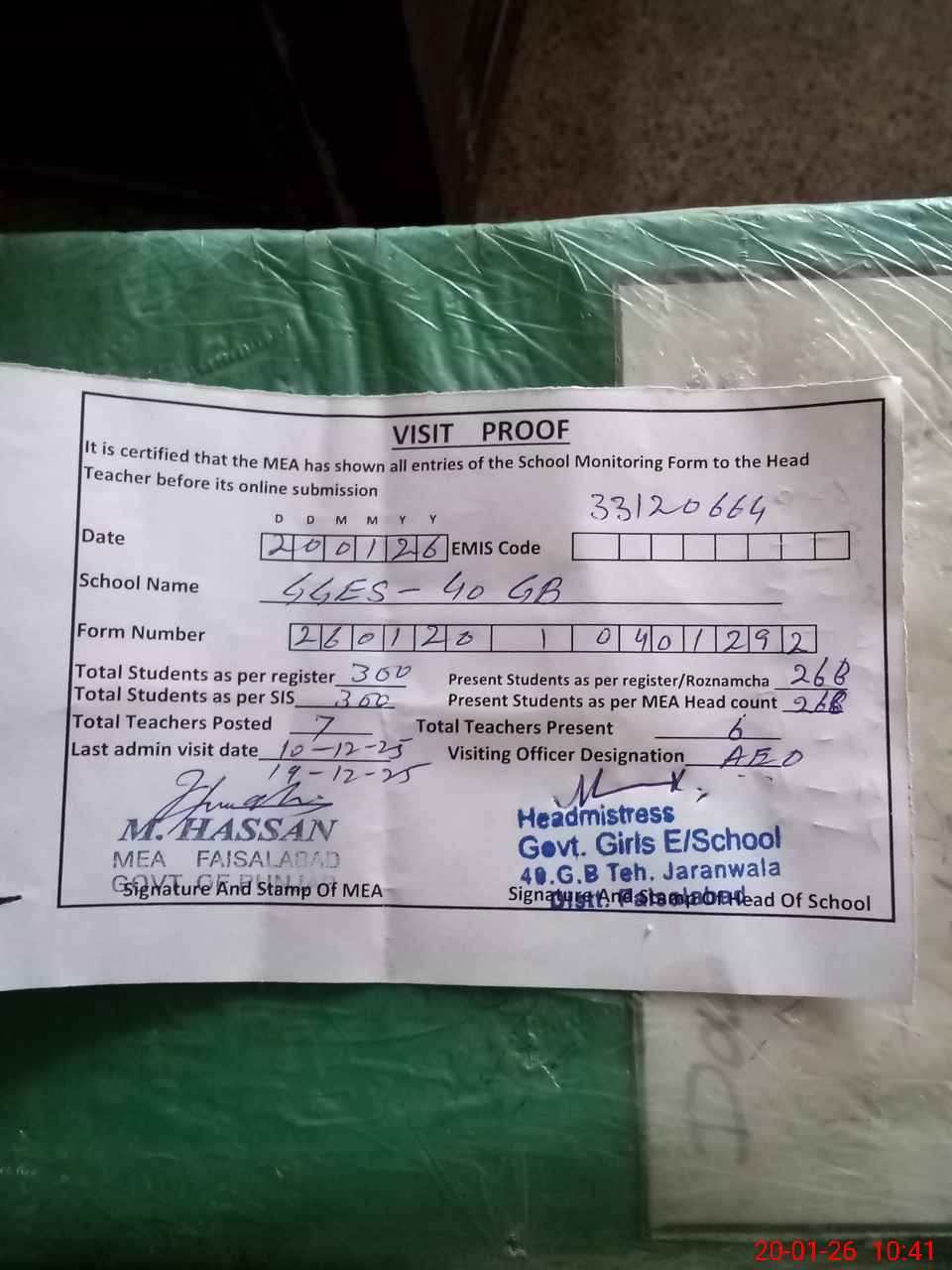 | EMIS Code: 33120664 | Name of School: GGES CHAK 40 GB SATIANA | |||