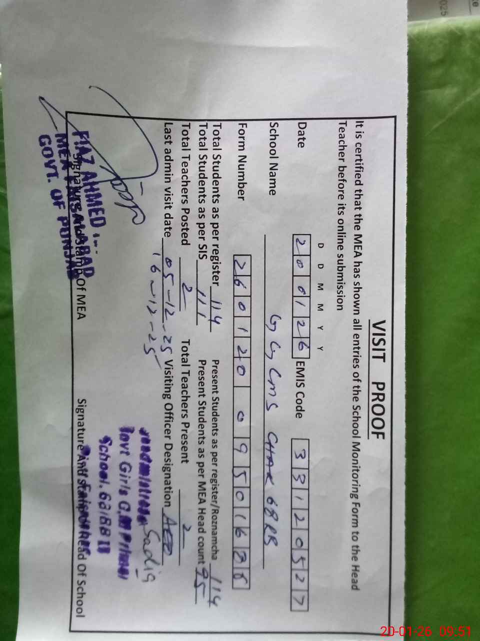 | EMIS Code: 33120527 | Name of School: GGCMS CHAK 68 RB KHURRIANWALA | |||