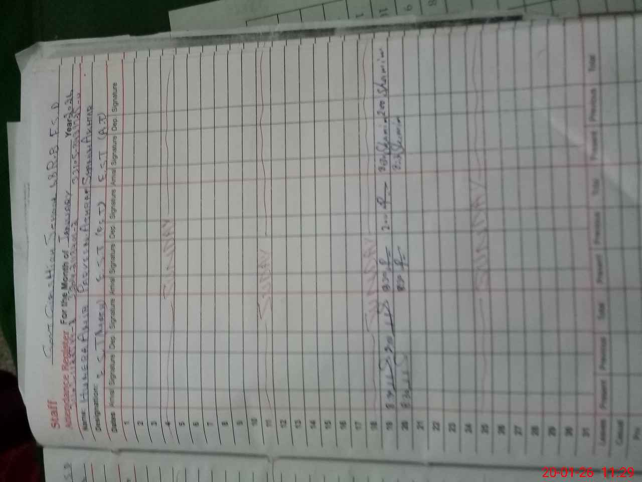 | CNIC | Full Name | Designation | R/C | Absence During Last Calender Month |