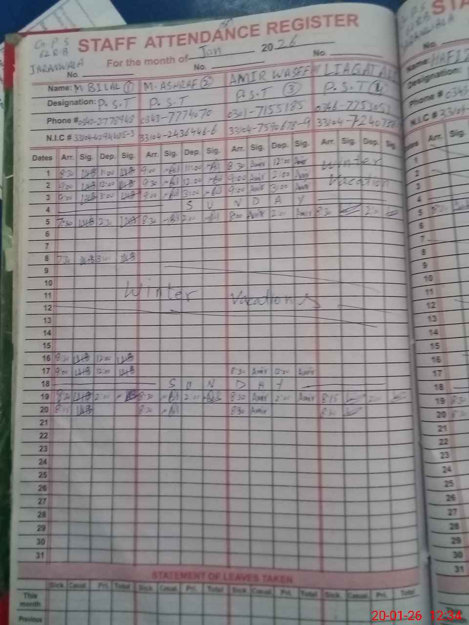 | CNIC | Full Name | Designation | R/C | Absence during last cal. month |