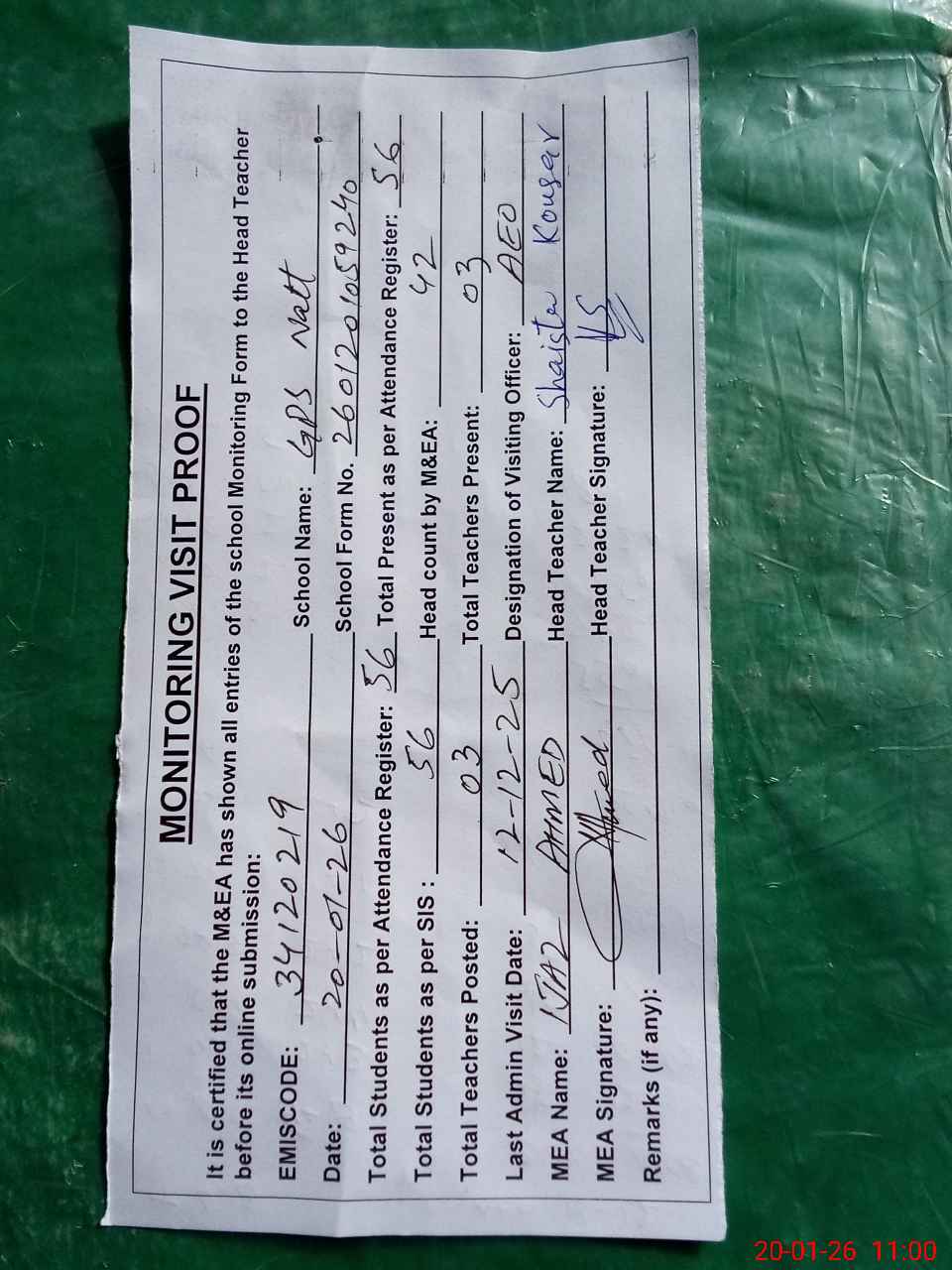| EMIS Code: 34120219 | Name of School: GPS NATT | |||