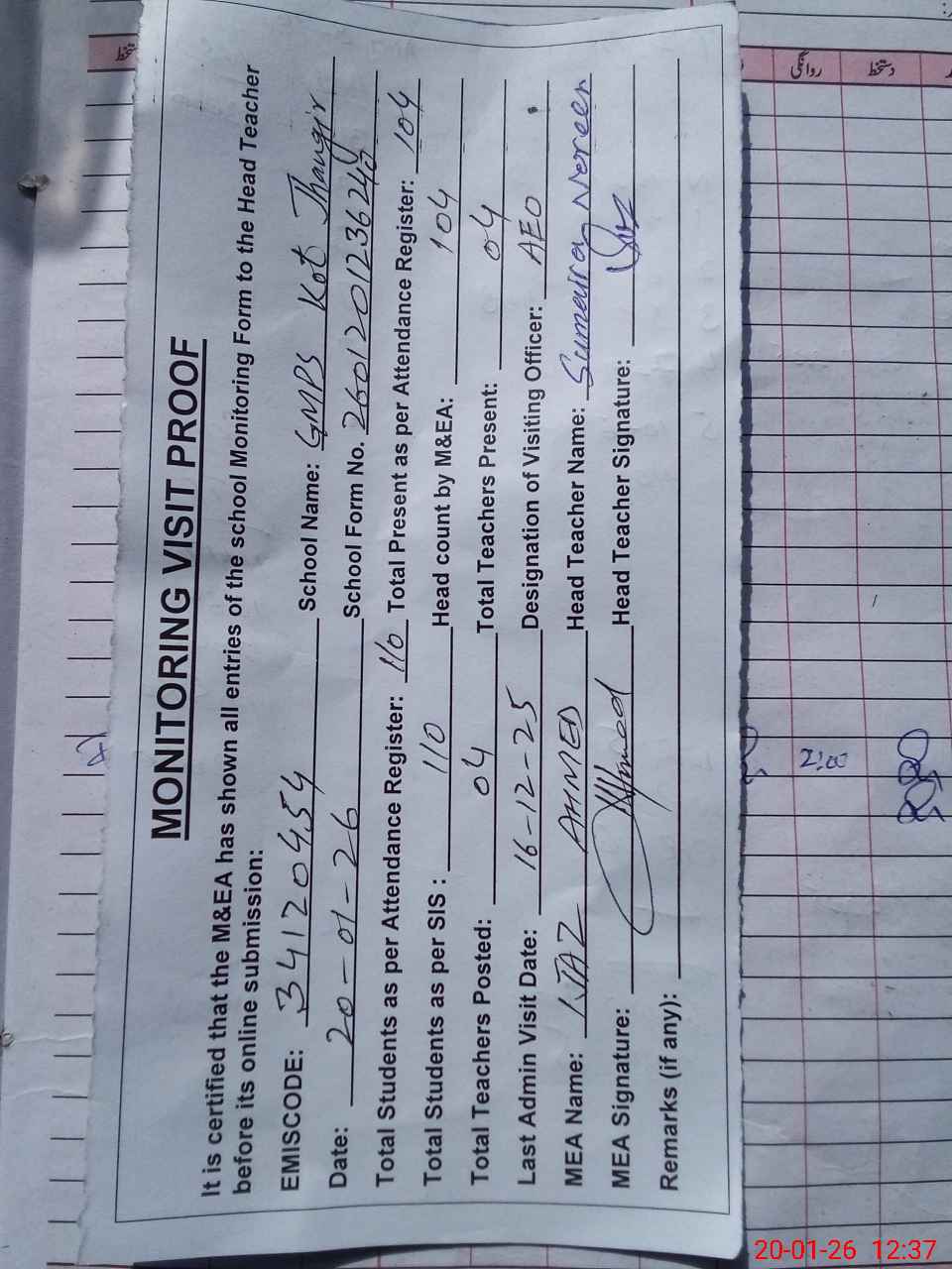 | EMIS Code: 34120454 | Name of School: GMPS KOT JAHANGIR | |||