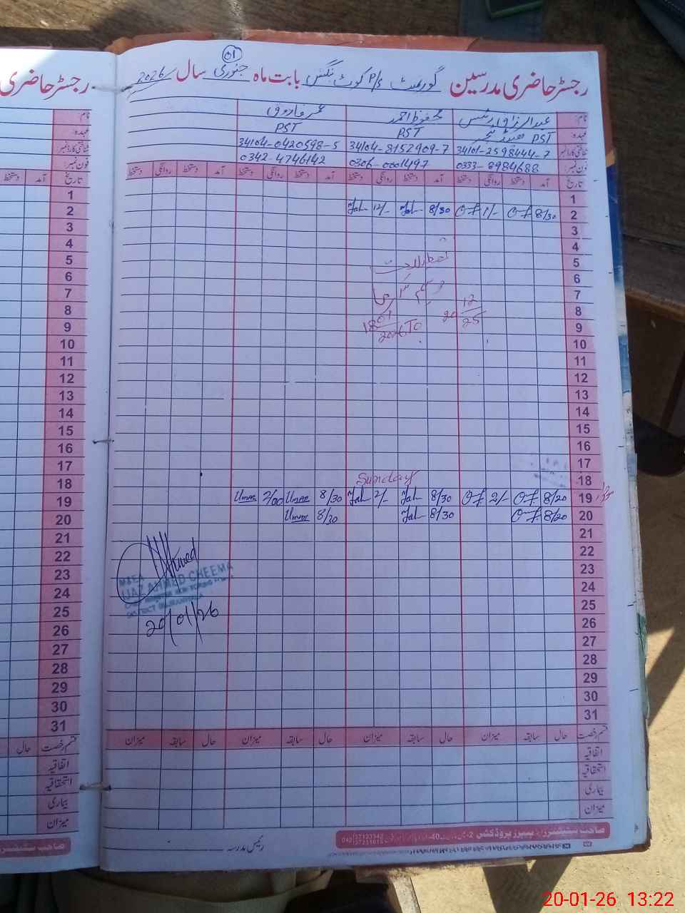 | Name: Ab**** Ra**** Designation: (School Headmaster's/Headmistress's) PST Phone/Cell Number: 03**** |