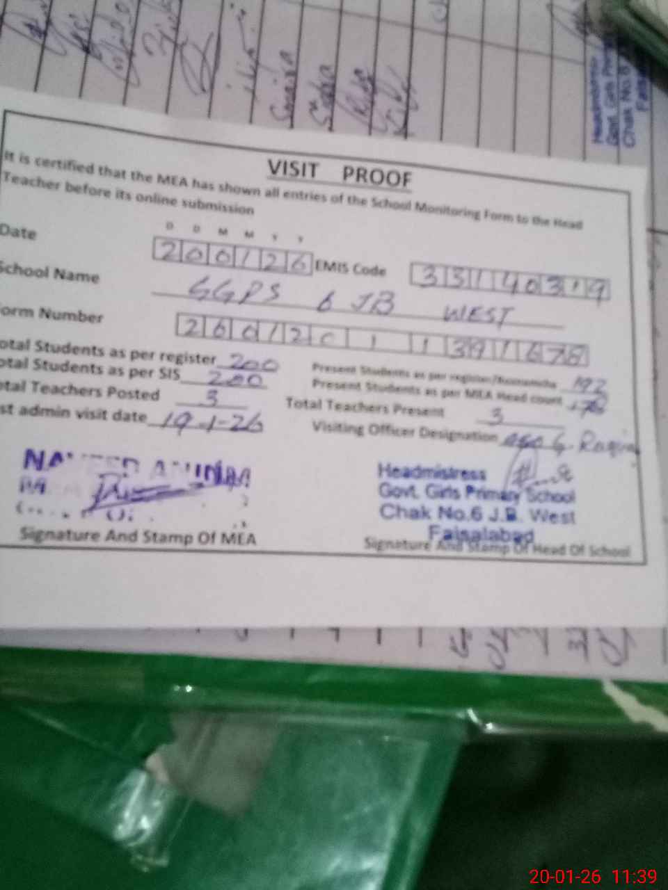 | EMIS Code: 33140319 | Name of School: GGPS CHAK 6 JB WEST | |||