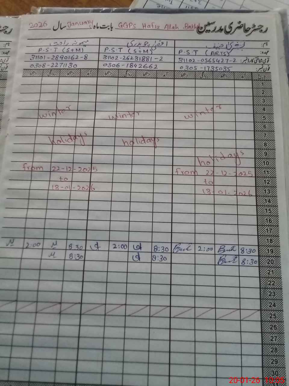 | Name: Bu**** Ha**** Designation: (School Headmaster's/Headmistress's) PST Phone/Cell Number: 03**** |