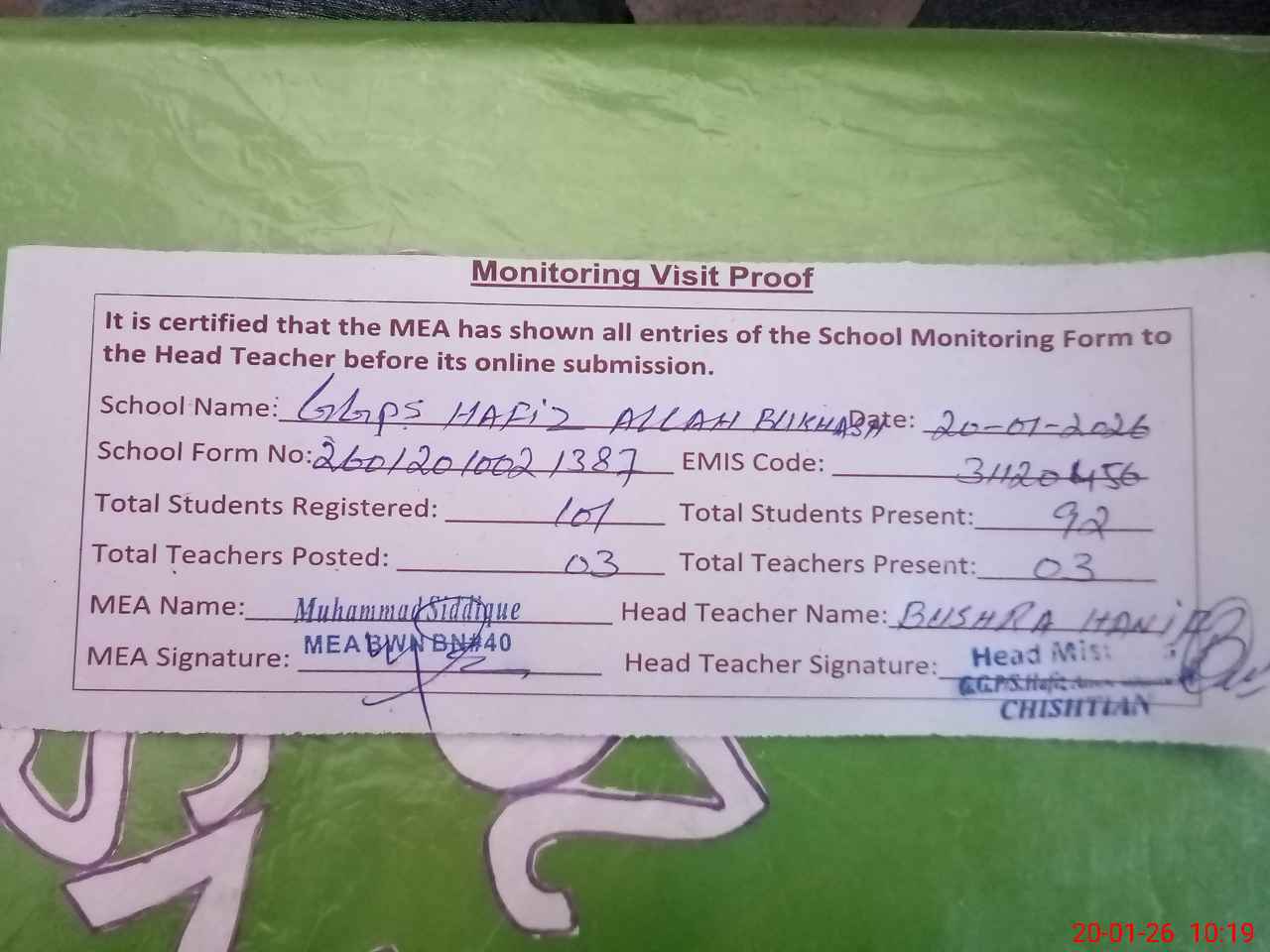 | EMIS Code: 31120456 | Name of School: GGPS HAFIZ ALLAH BUKHASH | |||