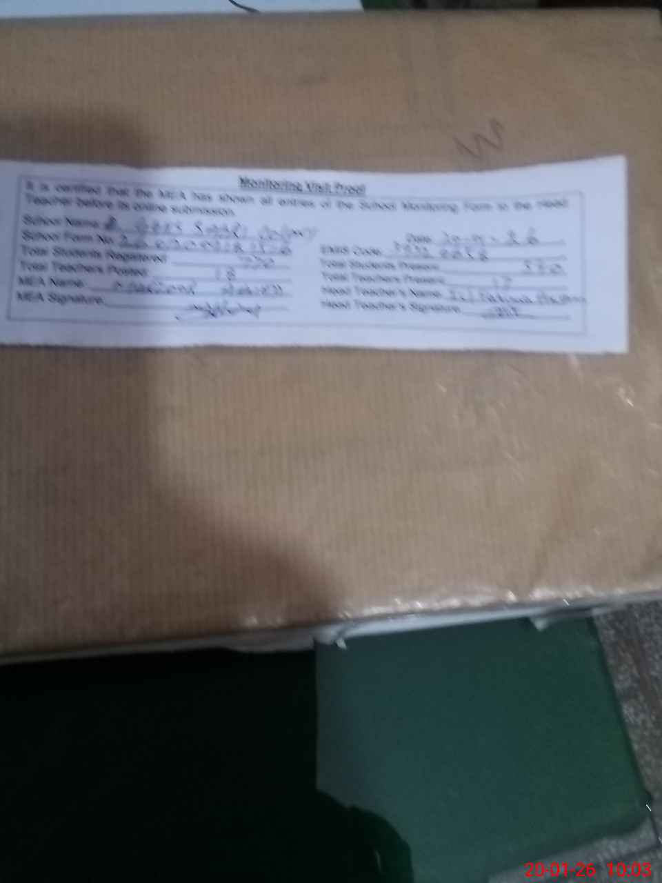 | Certified that this School was Inspected by the Undersigned MEA/DMO Today and the Information Stated Above is as Per Record. | |||||