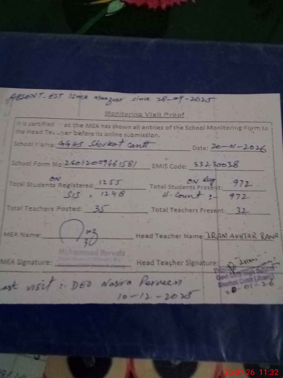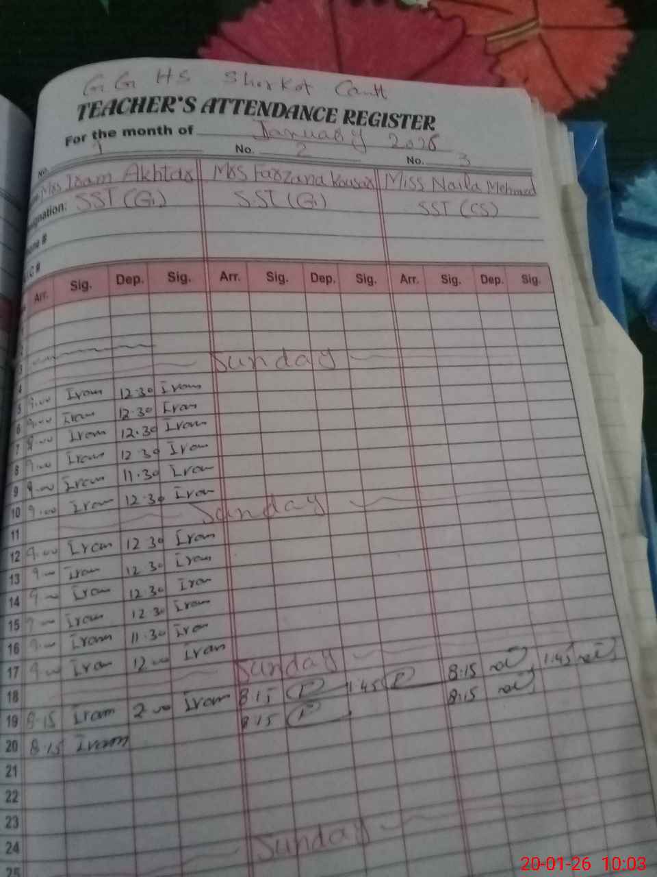| EMIS Code: 33230038 | Name of School: GGHS SHORKOT CANTT | |||