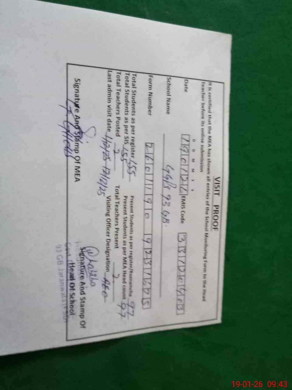 | Certified that this School was Inspected by the Undersigned MEA/DMO Today and the Information Stated Above is as Per Record. | |||||