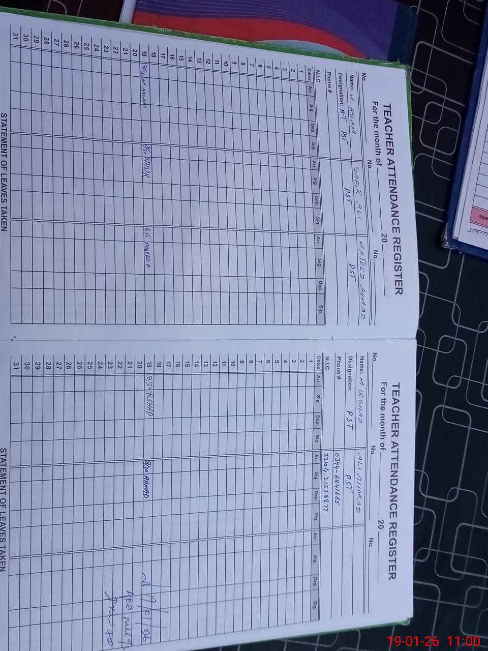 | Name: Ad**** Ah**** Designation: (School Headmaster's/Headmistress's) PST Phone/Cell Number: 03**** |