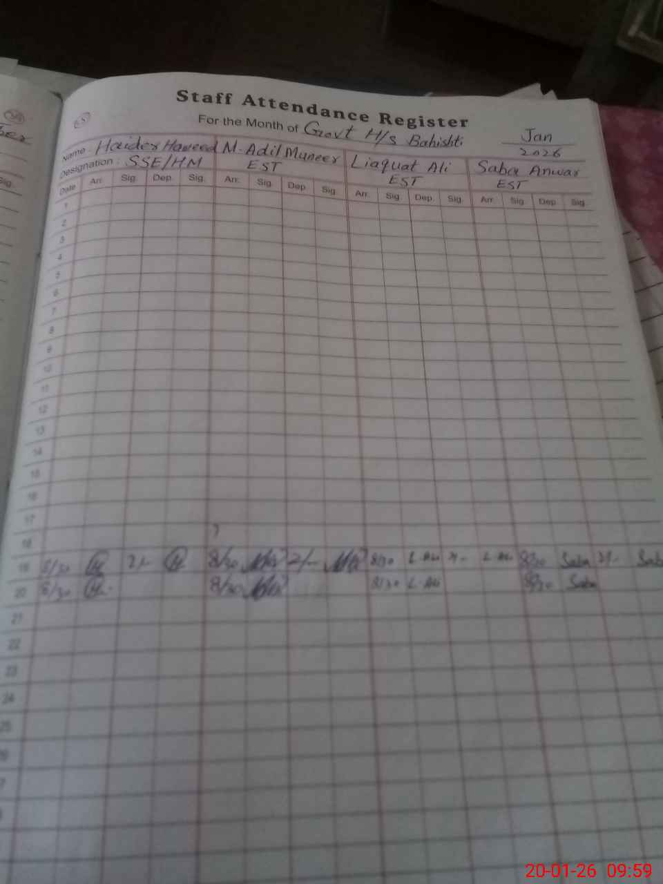 | Monitoring Date: 20-01-2026 | Start Time: 20-01-2026 09:33 AM | End Time: 20-01-2026 10:07 AM | Name of MEA: Mu**** Sh**** | |