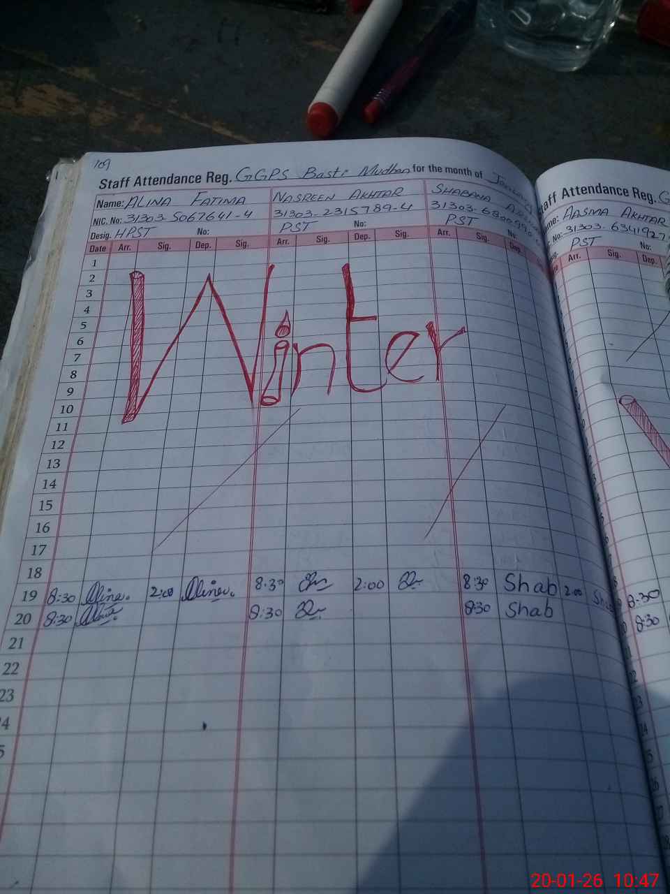 | CNIC | Full Name | Designation | R/C | Absence During Last Calender Month |