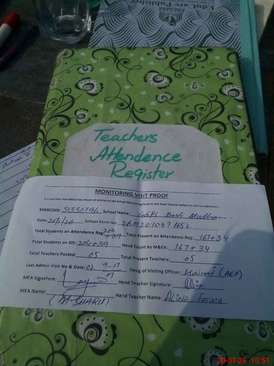 | Attendance Register | Head Teacher | MEA with School | Visit Proof |