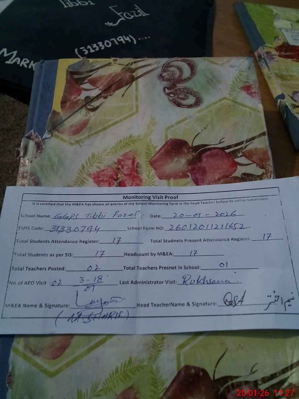 | EMIS Code: 31330794 | Name of School: GGPS TIBBI FAZAL | |||