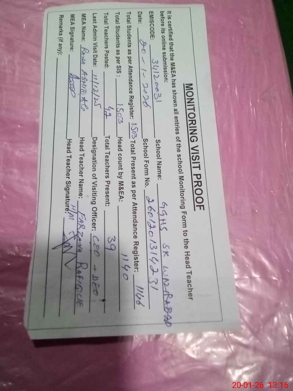 | EMIS Code: 34120031 | Name of School: GGHS S.K. WAZIRABAD | |||