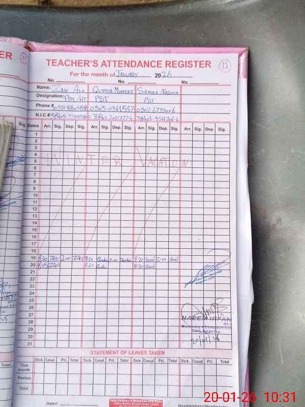 | Name: ZA**** AL**** Designation: (School Headmaster's/Headmistress's) PST Phone/Cell Number: 03**** |