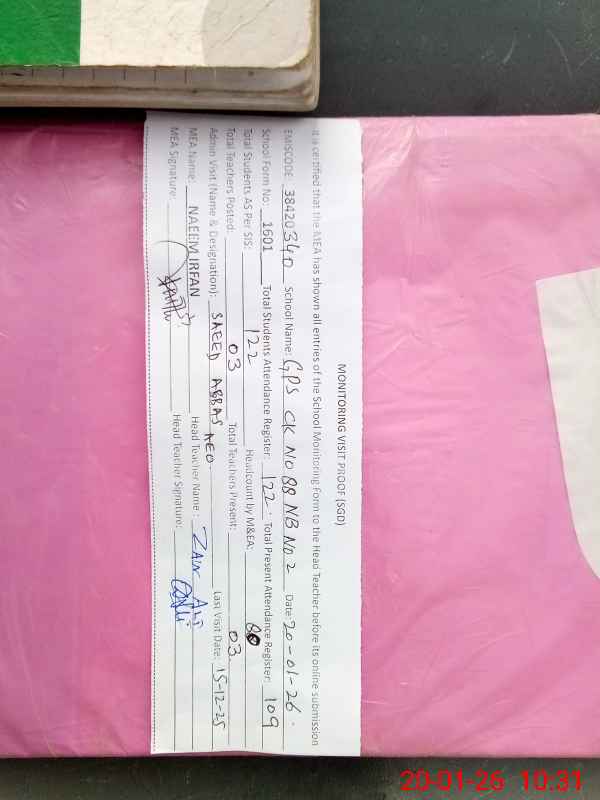 | EMIS Code: 38420340 | Name of School: GPS CHAK NO.88 NB NO.2 | |||