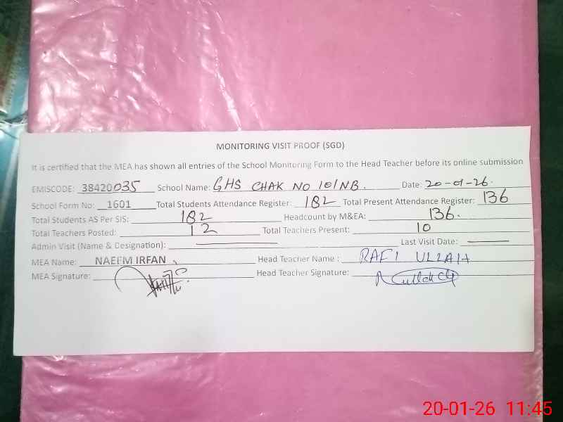| EMIS Code: 38420035 | Name of School: GHS CHAK NO.101 NB SGD | |||