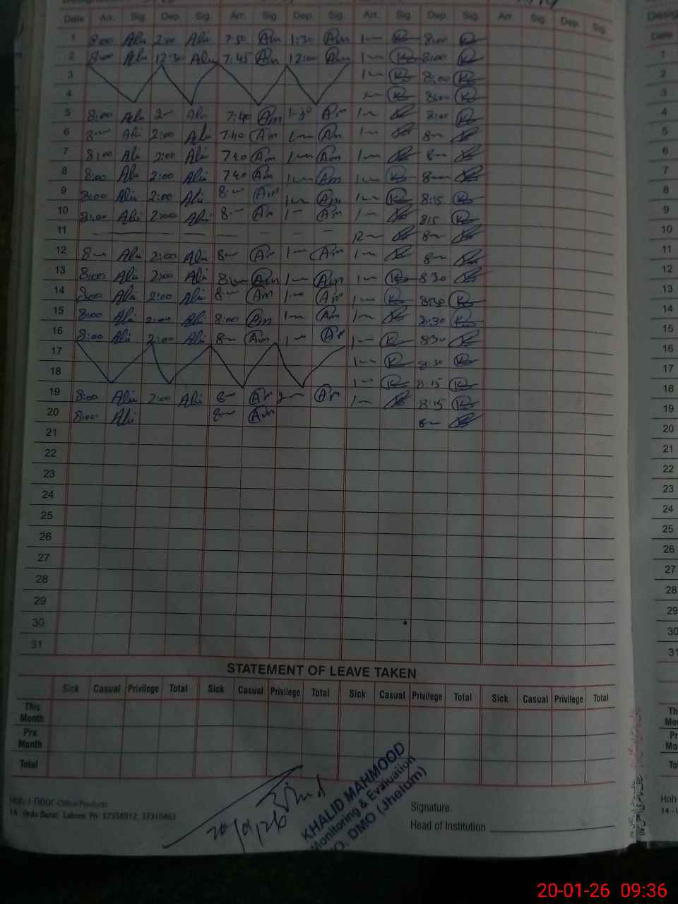 | 37**** | As**** Sh**** | N QASAD | 31 | 0 | 0 | 0 | 0 | 0 | 0 | 0 | 31 | Extraordinary Leave | |