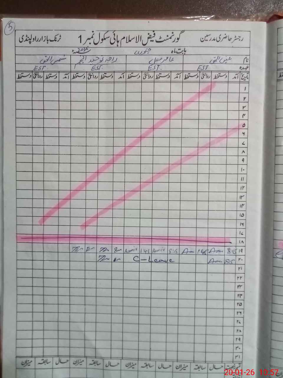 | CNIC | Full Name | Designation | R/C | Absence During Last Calender Month |