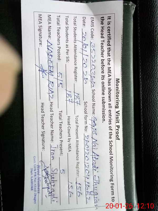| EMIS Code: 35220366 | Name of School: GGPS NAI ABADI JHUGGIAN RAIWIND ROAD | |||