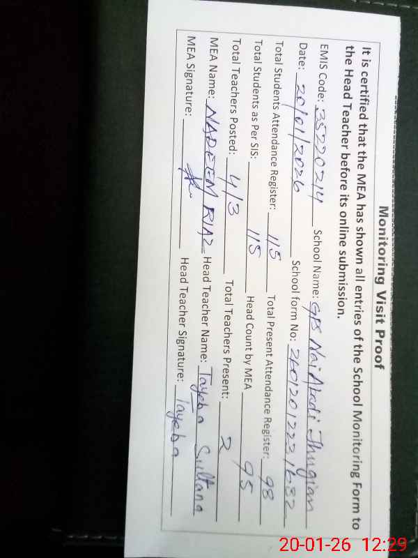 | Attendance Register | Head Teacher | MEA with School | Visit Proof |