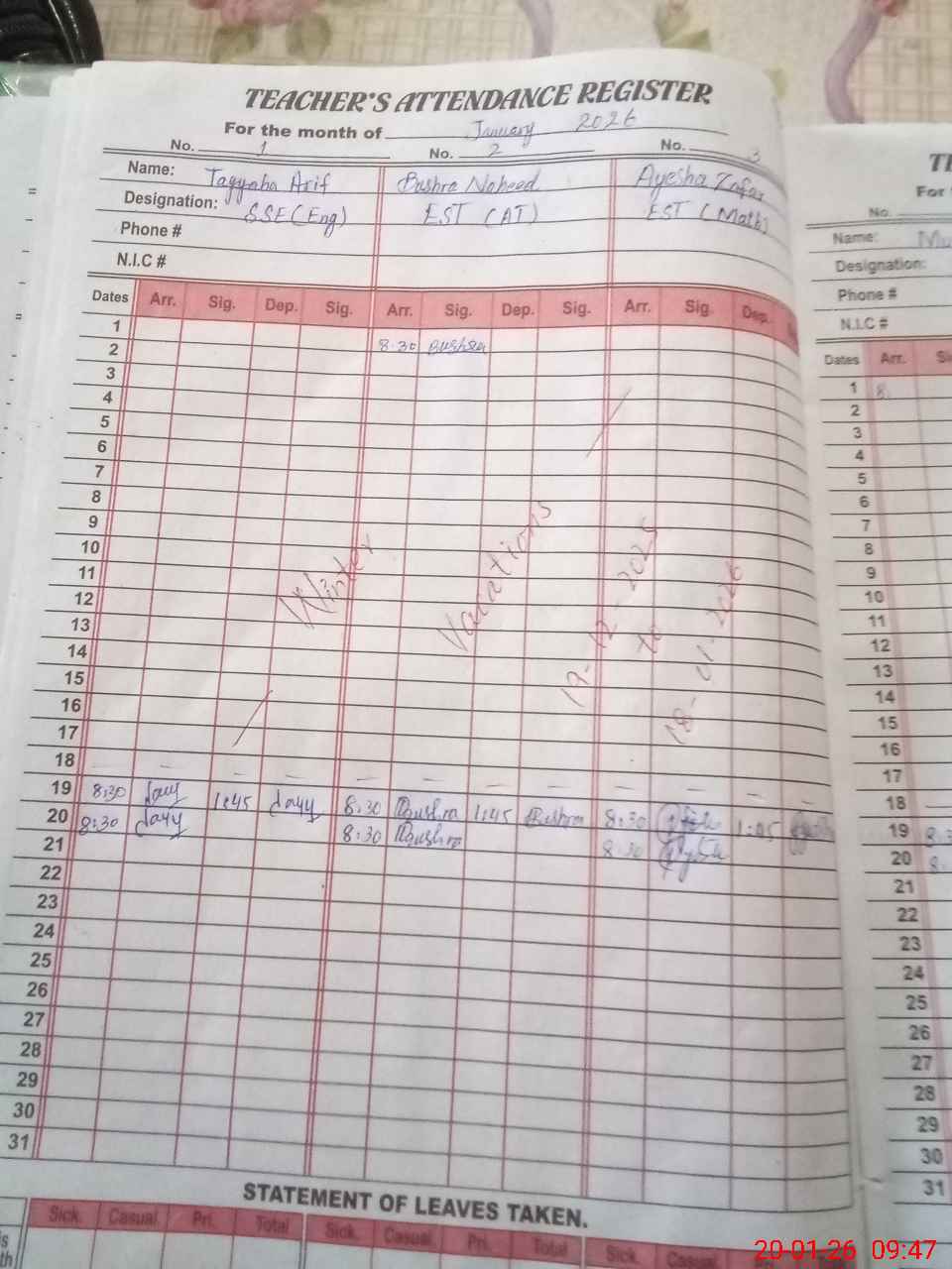 | Name: TA**** AR**** Designation: (School Headmaster's/Headmistress's) SSE ENGLISH Phone/Cell Number: 03**** |