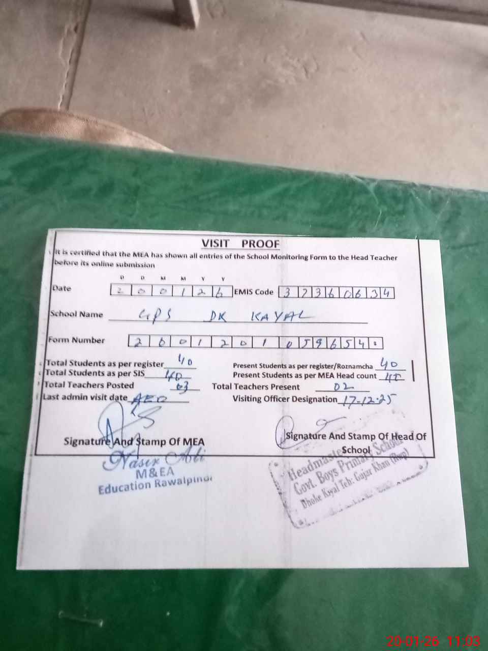 | EMIS Code: 37360634 | Name of School: GPS DHOK KAYAL | |||