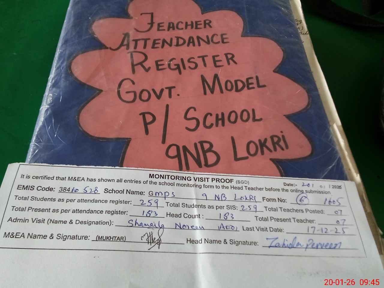 | EMIS Code: 38410528 | Name of School: GMPS CHAK NO.9 NB LOKRI | |||
