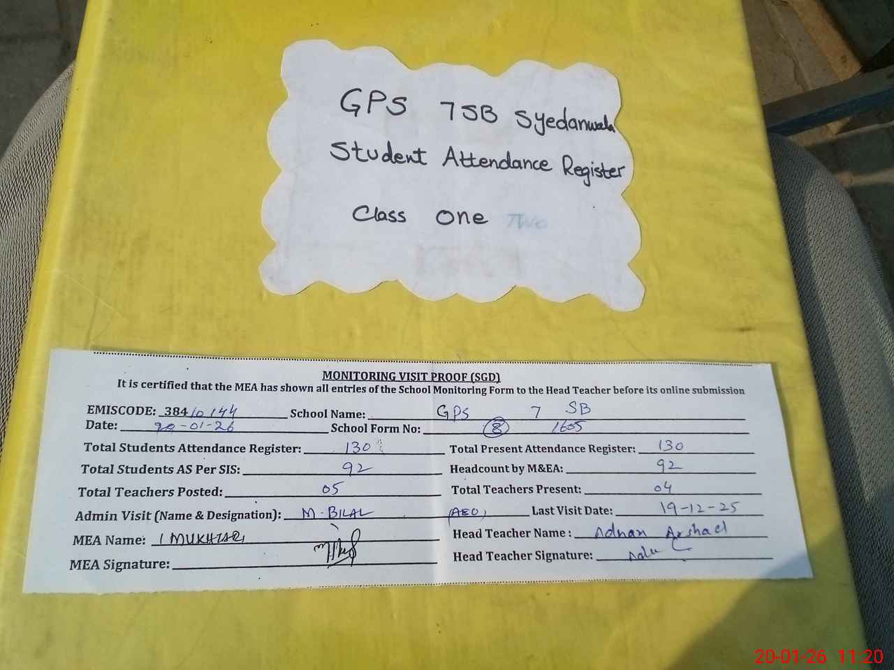 | EMIS Code: 38410144 | Name of School: GPS CHAK NO.7 SB | |||