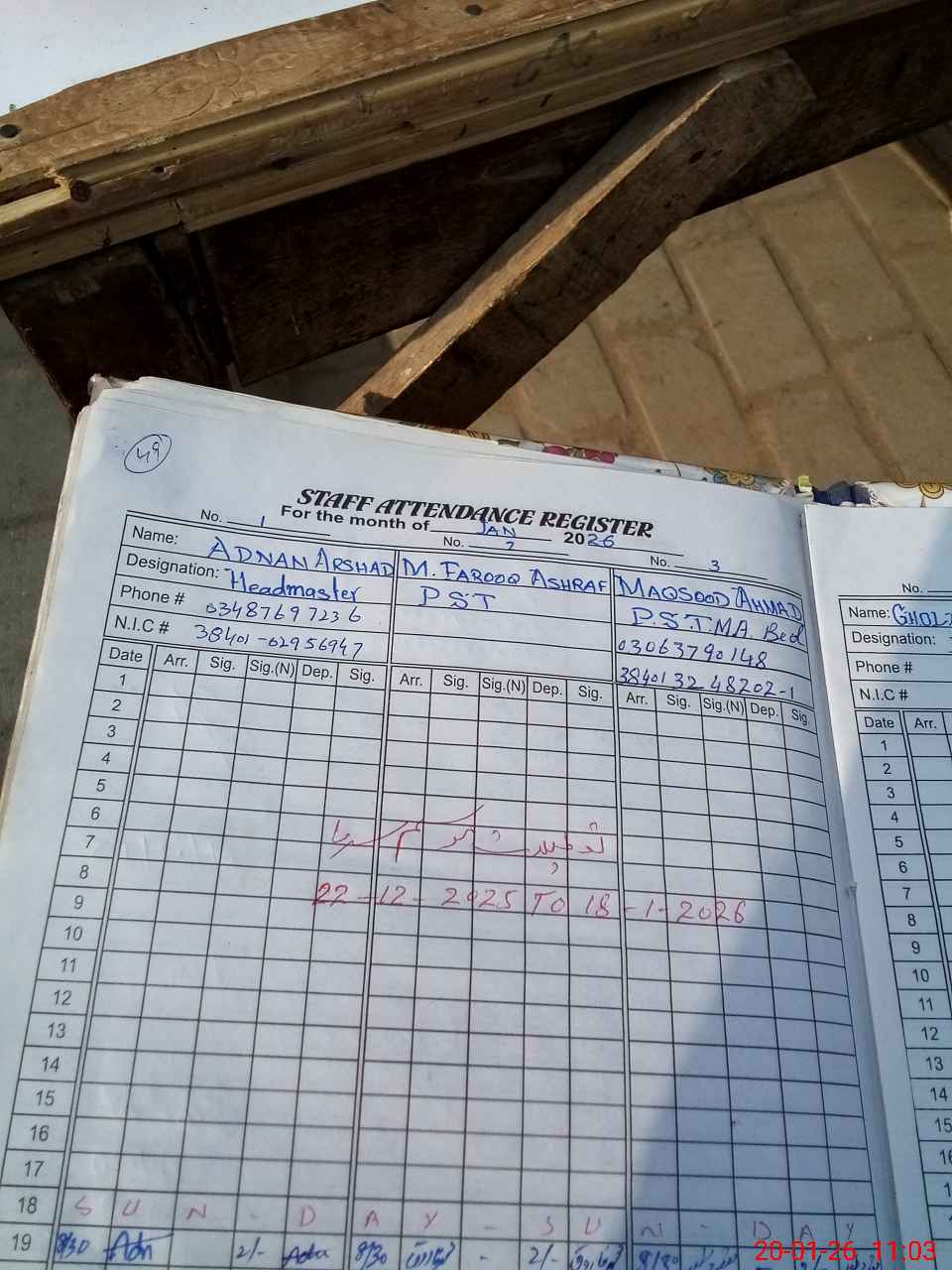 | Name: Ad**** Ar**** Designation: (School Headmaster's/Headmistress's) PST Phone/Cell Number: 03**** |