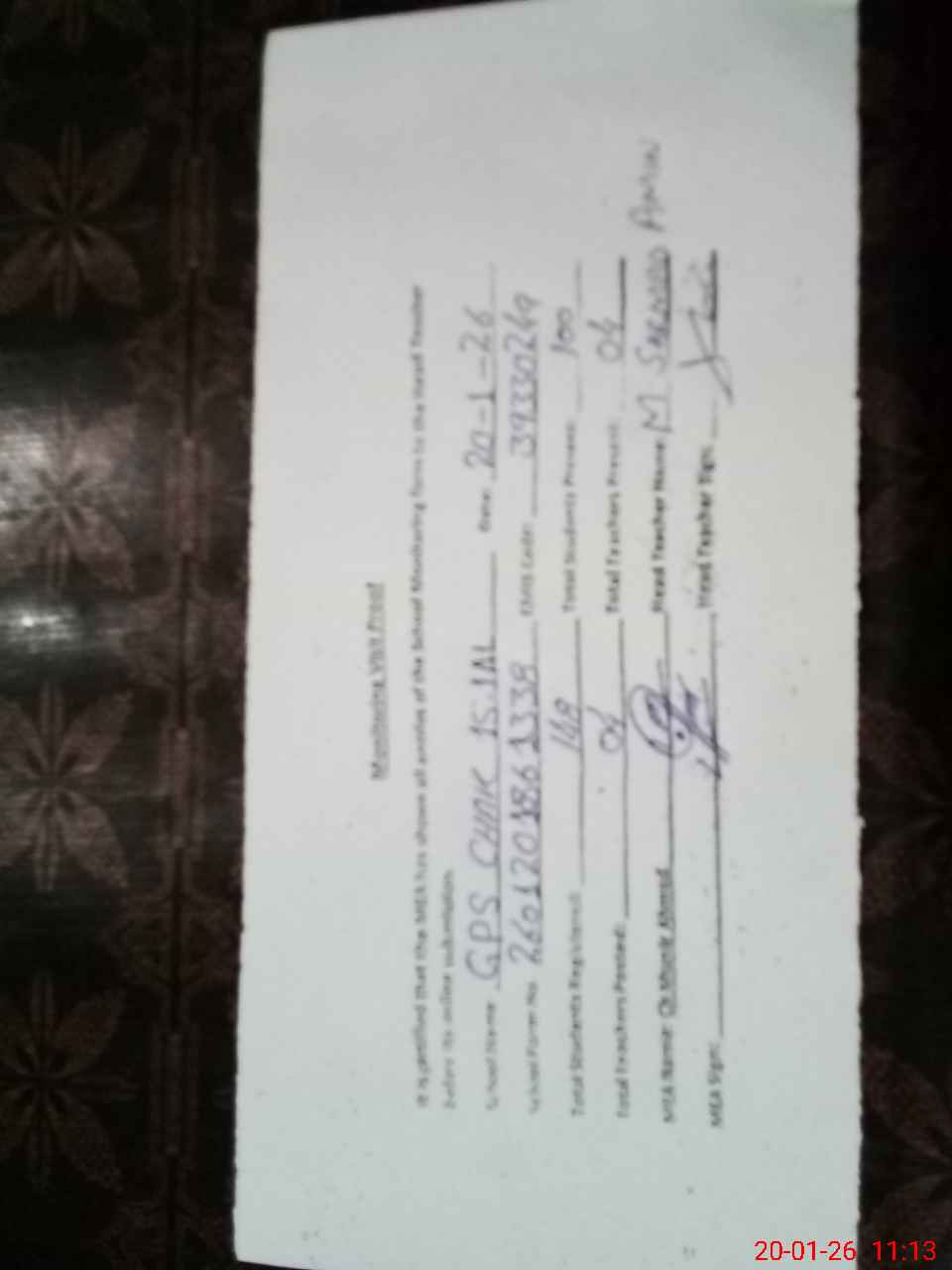 | Name: TA**** ME**** Designation: (School Headmaster's/Headmistress's) HEADMASTER Phone/Cell Number: 03**** |
