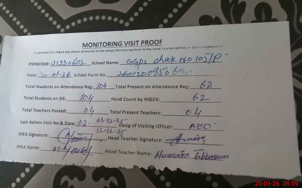 | EMIS Code: 31330602 | Name of School: GGPS CHAK NO. 105/P | |||