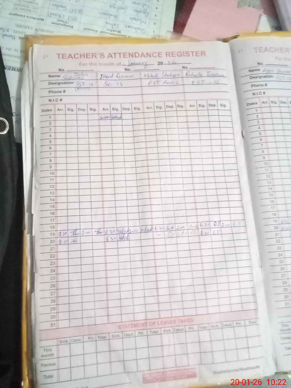 | 35**** | Ay**** Ka**** | PST Science/Maths | Regular | 0 | 0 | 0 | 0 | 0 | 0 | 0 | 0 | 0 | Absent (Un-Authorized) |