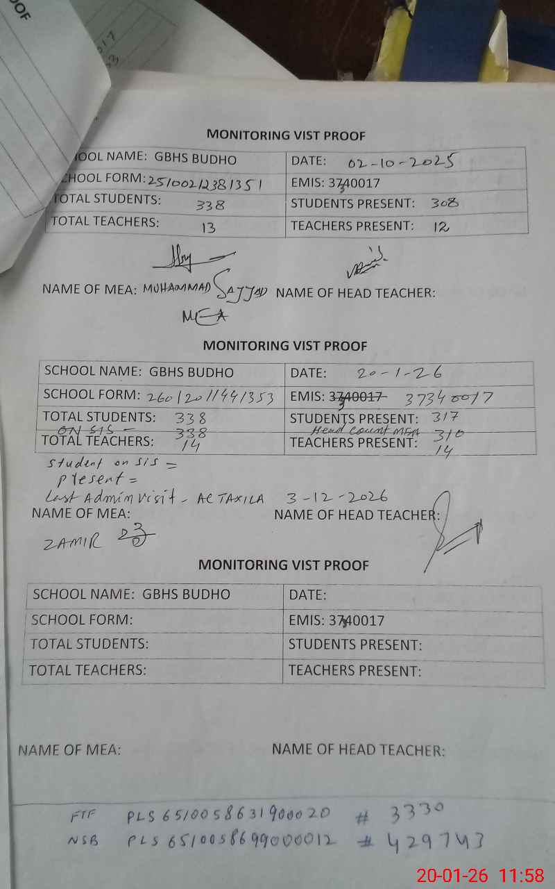 | EMIS Code: 37340017 | Name of School: GHS BUDHU | |||