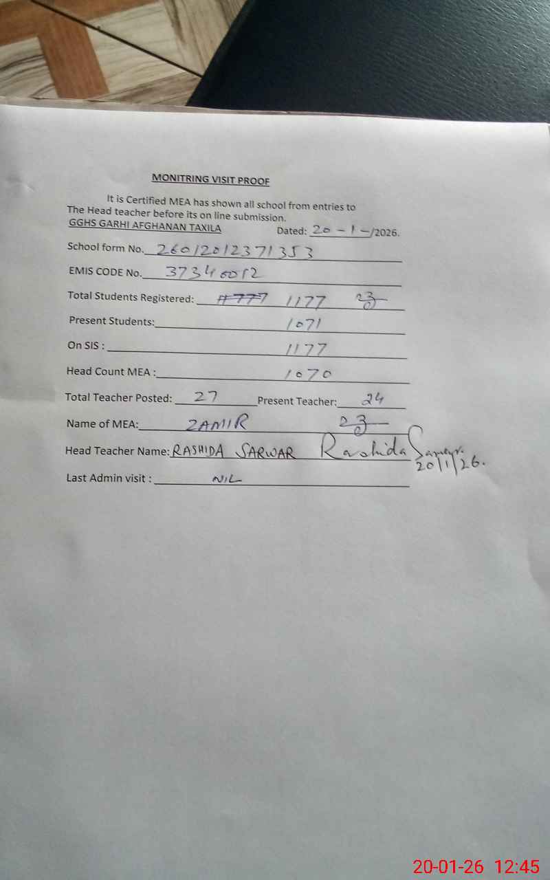 | EMIS Code: 37340012 | Name of School: GGHS GHARI AFGHANAN | |||