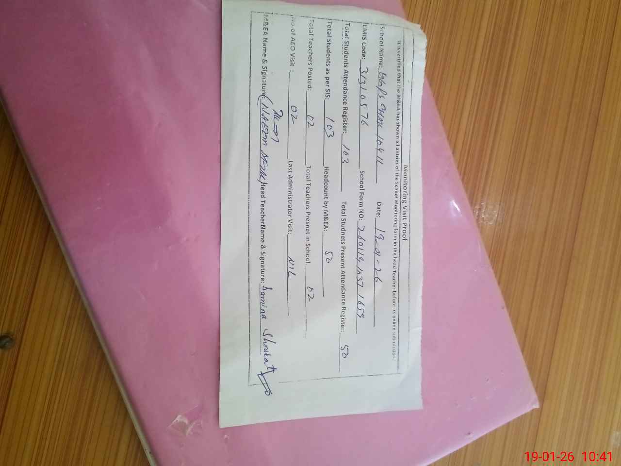 | Certified that this School was Inspected by the Undersigned MEA/DMO Today and the Information Stated Above is as Per Record. | |||||