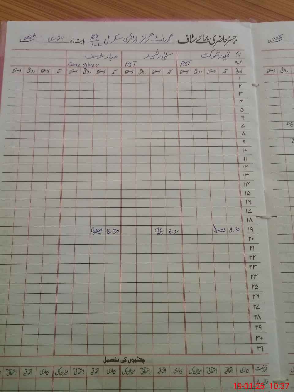 | Name: Sa**** Sh**** Designation: (School Headmaster's/Headmistress's) PST Phone/Cell Number: 03**** |