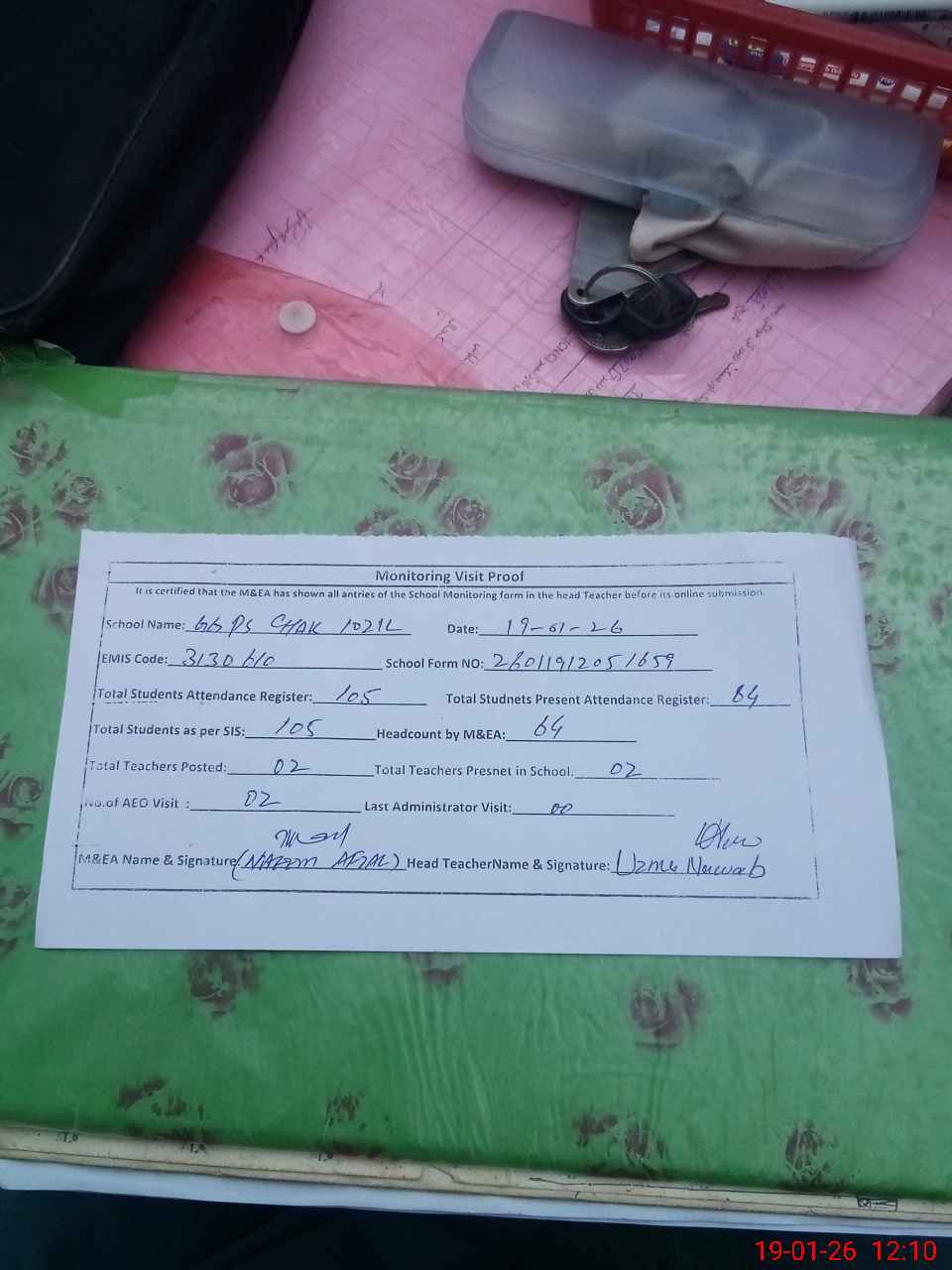 | Name: Uz**** Na**** Designation: (School Headmaster's/Headmistress's) PST Phone/Cell Number: 03**** |