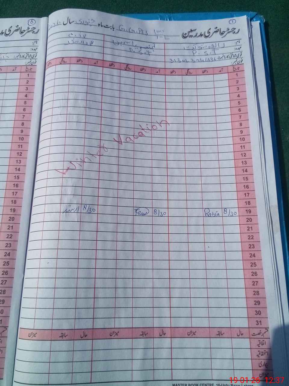 | Name: RA**** SH**** Designation: (School Headmaster's/Headmistress's) PST Phone/Cell Number: 03**** |