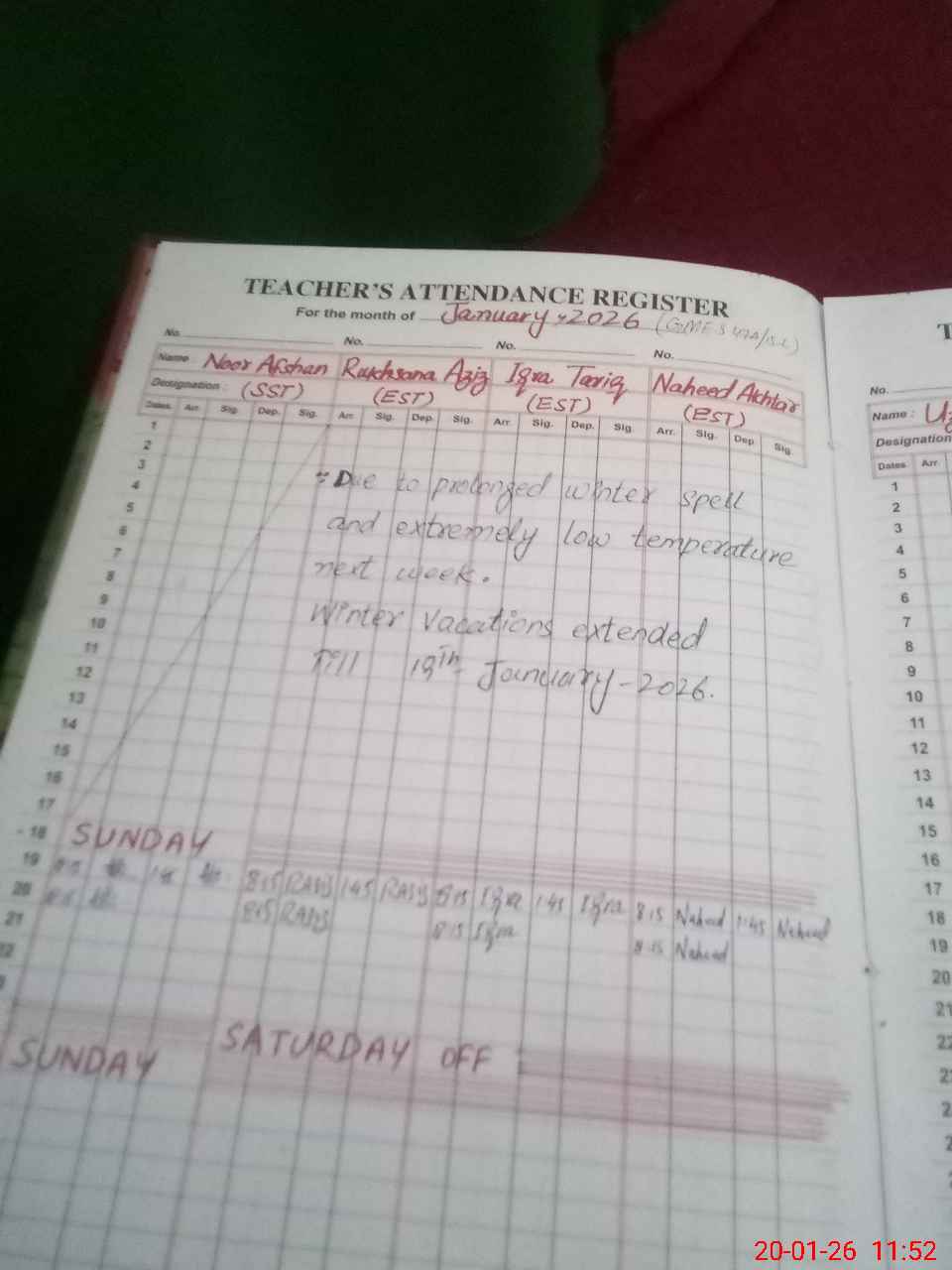 | Monitoring Date: 20-01-2026 | Start Time: 20-01-2026 10:49 AM | End Time: 20-01-2026 12:02 PM | Name of MEA: MU**** SH**** | |