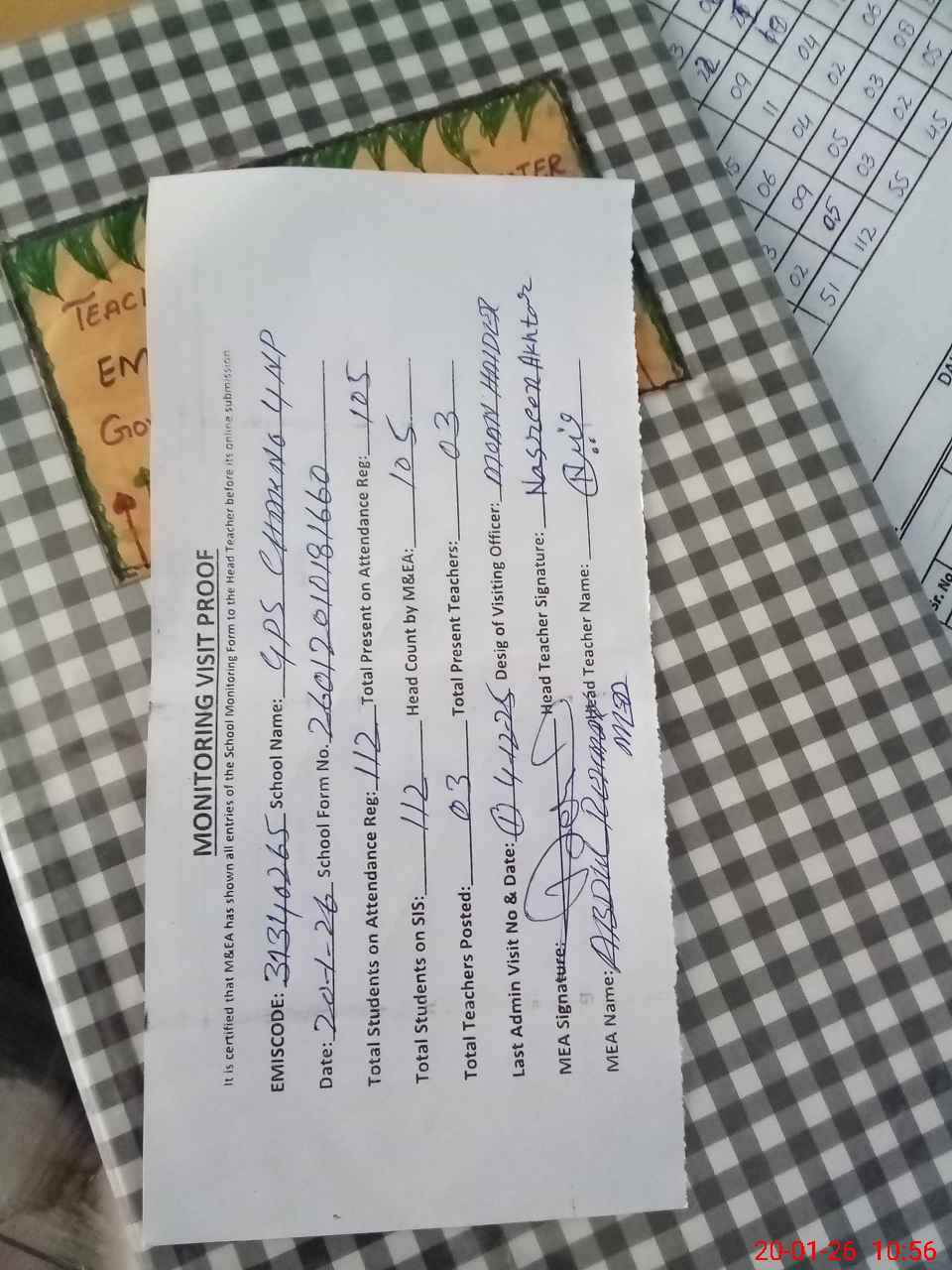 | EMIS Code: 31340265 | Name of School: GPS CHAK NO. 4/NP | |||