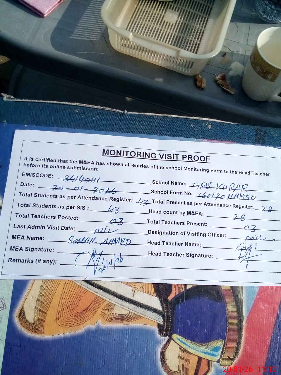 | EMIS Code: 34140111 | Name of School: GPS KURAR | |||