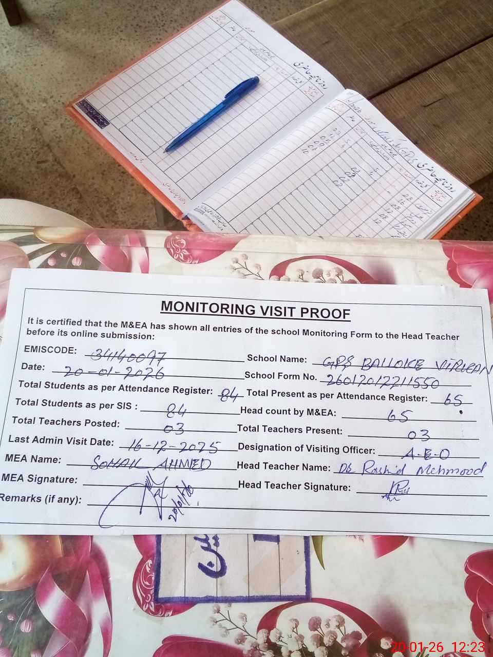 | EMIS Code: 34140097 | Name of School: GPS BALLOKE VIRKAN | |||